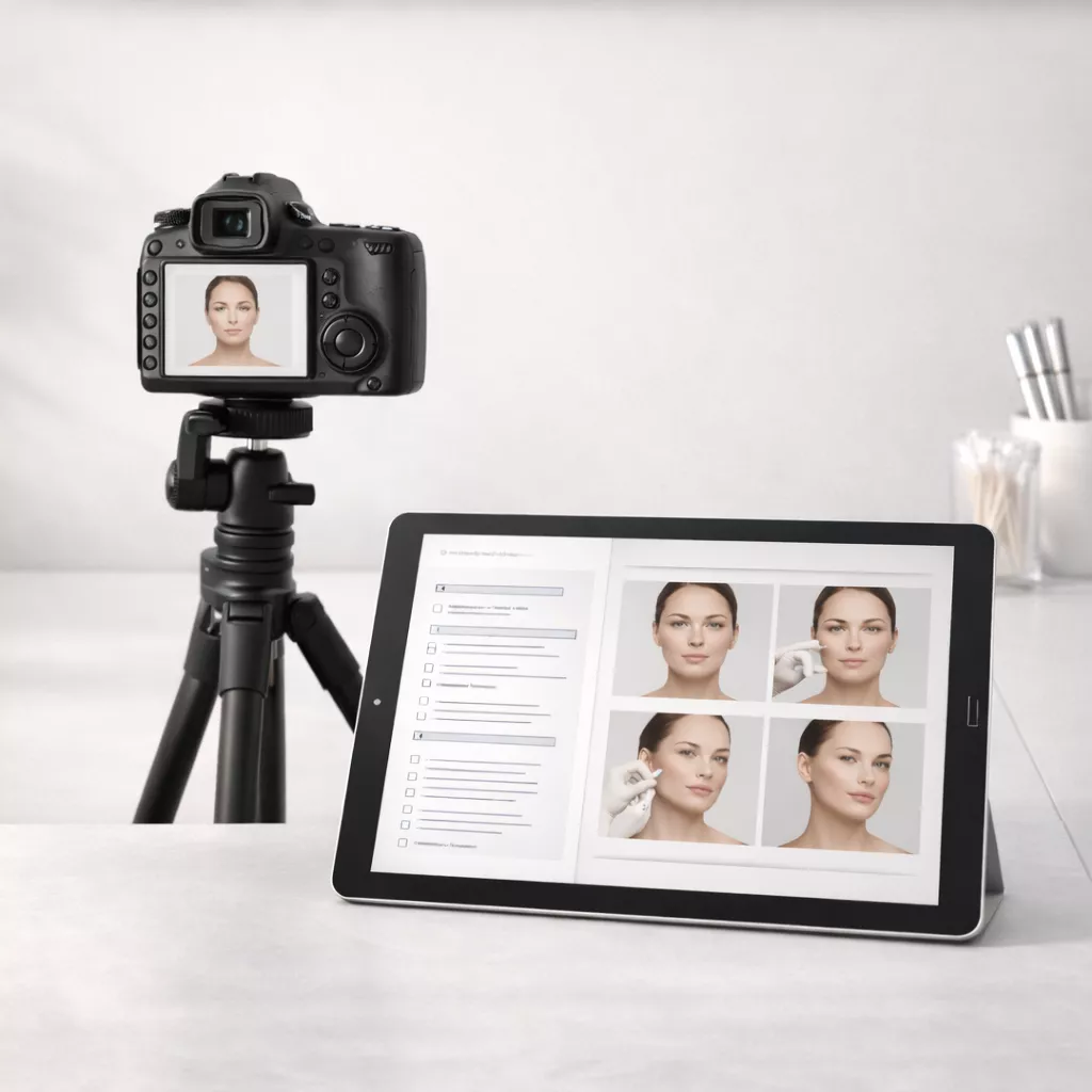 Realiza una evaluación fotográfica profesional antes, durante y después del tratamiento, garantizando una comparación objetiva y reproducible, con respaldo médico-legal y enfoque ético en marketing.